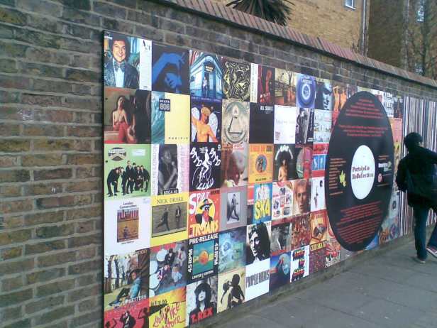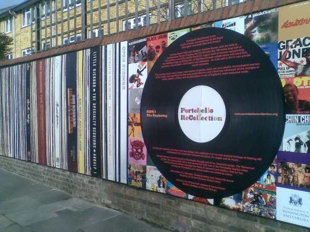 En 100 meter lang strækning på den nordlige del af den charmerende gade er dekoreret som en gigantisk lp-samling som en del af et fotokunstprojekt, Portobello ReCollection.