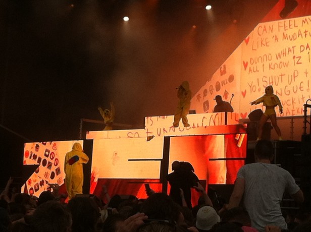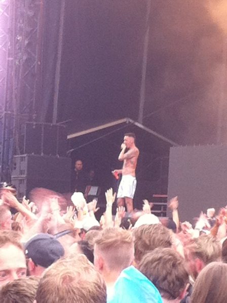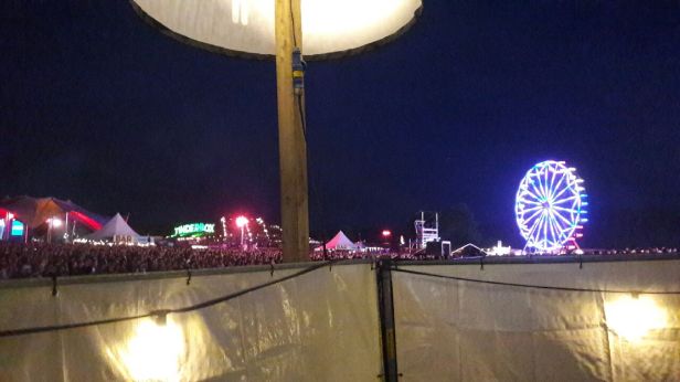 23.28, Snab: Nåede kun lige det sidste af ‘Somebody Told Me’. Men udsigten fra pissoiret er meget gøgleragtig.