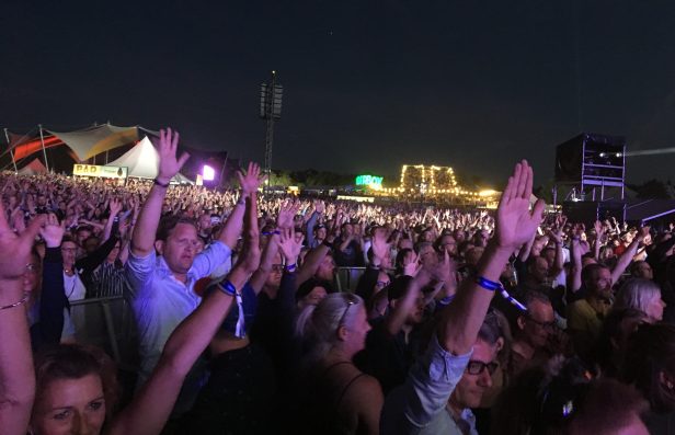 Det er solskin, folk har drukket sig pænt berusede i løbet af dagen, der var varmet godt op med Prophets of Rage og Iggy Pop, der på hver deres har noget, som Depeche Mode-fansene kan forstå.