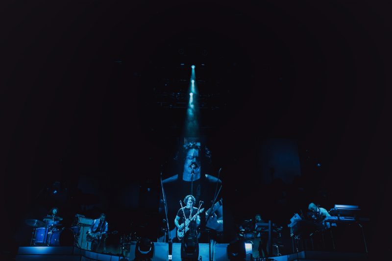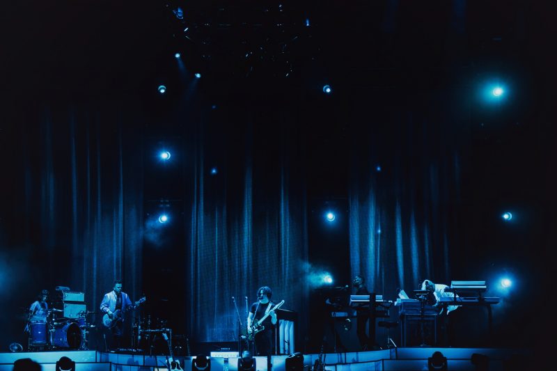 - Bagskærmen så fantastisk ud med både livebilleder og den medbragte grafik. Æstetikken blev konsekvent holdt i Jack White-farverne sort, blå og hvid, og det så skidegodt ud.