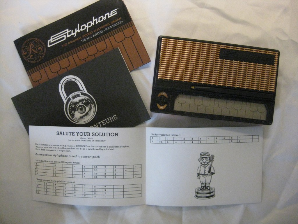 Jeg har også en plastik-theramin og en såkaldt Stylophone med nodehæfte til, så man kan lære et par af Raconteurs-melodierne.