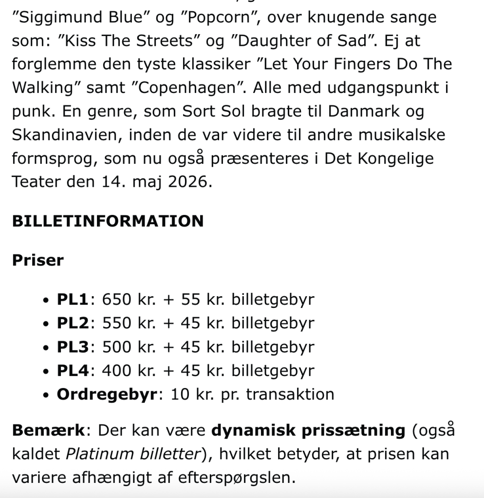 En ting er, at Live Nation tilsyneladende har fået listet dynamisk prissætning ind herhjemme, uden at alle landets få resterende musikjournalister spørger dem, hvad fanden meningen er – noget andet er, at det tidligere punkband Sort Sol er hoppet med på bølgen til deres koncert i Det Kgl. Teater i maj næste år.